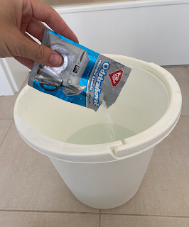След това изплакваме с вода, в която сме разтворили една торбичка от този препарат.